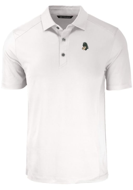 Enhance your professional style with this striking Mens White Short Sleeve Polo Shirt! Showcase your team pride among colleagues with this exceptional MSU White Vault Forge Recycled Short Sleeve Polo. Stand out and make a statement in this Michigan State Spartans Short Sleeve Polo, featuring a moisture wicking material that adds a touch of distinction to your look.