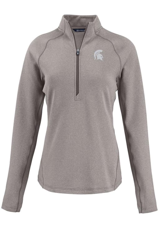 Embrace the warmth and showcase your Spartans pride with our Michigan State Spartans Long Sleeve Qtr Zip. This Womens Grey Pehastin Long Sleeve Pullover offers a team logo on chest for the perfect combination of comfort and style. Elevate your everyday look with this must-have Michigan State Spartans Long Sleeve Qtr Zip.