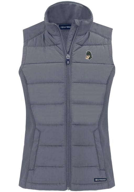 Gear up for the upcoming tailgate with the ultimate Michigan State Spartans Womens Grey Vest. Stay warm in this MSU Vault Evoke Sleeveless Jacket, which features a 100% recycled polyester bonded honeycomb softshell.
