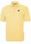 Mens Michigan Wolverines Gold Cutter and Buck Virtue Eco Pique Stripe Short Sleeve Polo Shirt