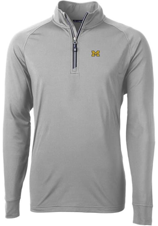 Mens Michigan Wolverines Grey Cutter and Buck Adapt Eco Knit Recycled Qtr Zip