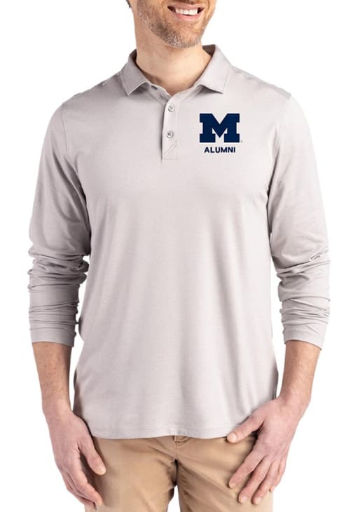 Make a bold statement in this Michigan Wolverines Cutter and Buck Mens Grey Alumni Coastline Long Sleeve Long Sleeve Polo! This Polo features a team logo on left chest, making this Mens Long Sleeve Polo Shirt perfect for any Michigan fan who wants to display their spirit in any setting.