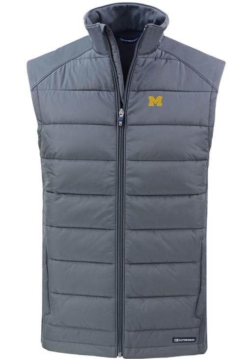 Mens Michigan Wolverines Grey Cutter and Buck Evoke Vest