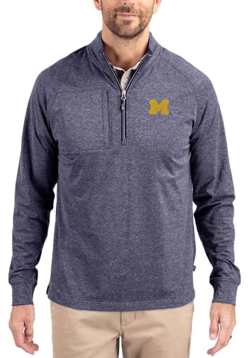 Embrace the warmth and showcase your Wolverines pride with our Michigan Wolverines Big and Tall Qtr Zip. This Mens Navy Blue Adapt Eco Knit Big and Tall Pullover offers a wind resistant recycled shell for the perfect combination of comfort and style. Elevate your everyday look with this must-have Michigan Wolverines Big and Tall Qtr Zip.