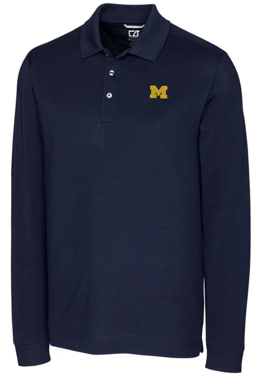 Make a bold statement in this Michigan Wolverines Cutter and Buck Mens Navy Blue Advantage Pique Long Sleeve Long Sleeve Polo! This Polo features a high quality tri-blend pique that combines super soft cotton with DryTec polyester and spandex, making this Mens Long Sleeve Polo Shirt perfect for any Michigan fan who wants to display their spirit in any setting.