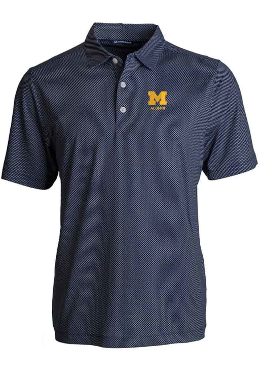 Enhance your professional style with this striking Mens Navy Blue Short Sleeve Polo Shirt! Showcase your team pride among colleagues with this exceptional Michigan Navy Blue Alumni Pike Symmetry Short Sleeve Polo. Stand out and make a statement in this Michigan Wolverines Short Sleeve Polo, featuring a moisture wicking material that adds a touch of distinction to your look.