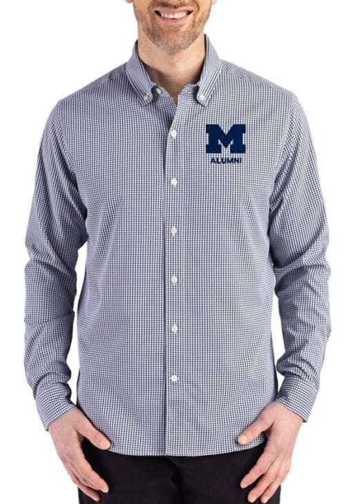 Show your Wolverines spirit show in the office with this Michigan Wolverines Dress Shirt! Embrace your team spirit and showcase it proudly in this Mens Navy Blue Alumni Skyline Long Sleeve Long Sleeve Button Down Shirt. This Long Sleeve Dress Shirt features a team logo on left chest.
