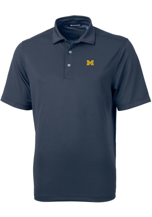 Mens Michigan Wolverines Blue Cutter and Buck Virtue Eco Pique Short Sleeve Polo Shirt