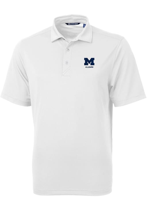 Mens Michigan Wolverines White Cutter and Buck Alumni Virtue Eco Pique Short Sleeve Polo Shirt