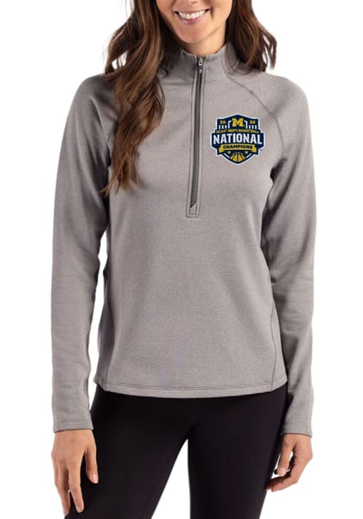 Embrace the warmth and showcase your Wolverines pride with our Michigan Wolverines Long Sleeve Qtr Zip. This Womens Graphite 2026 MBB Champions Pehastin Long Sleeve Pullover offers a team logo on chest for the perfect combination of comfort and style. Elevate your everyday look with this must-have Michigan Wolverines Long Sleeve Qtr Zip.