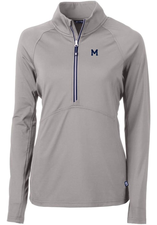 Embrace the warmth and showcase your Wolverines pride with our Michigan Wolverines Long Sleeve Qtr Zip. This Womens Grey Vault Adapt Eco Long Sleeve Pullover offers a college vault logo for the perfect combination of comfort and style. Elevate your everyday look with this must-have Michigan Wolverines Long Sleeve Qtr Zip.
