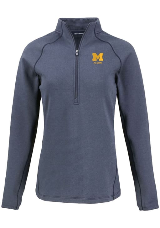 Embrace the warmth and showcase your Wolverines pride with our Michigan Wolverines Long Sleeve Qtr Zip. This Womens Navy Blue Alumni Pehastin Long Sleeve Pullover offers a team logo on chest for the perfect combination of comfort and style. Elevate your everyday look with this must-have Michigan Wolverines Long Sleeve Qtr Zip.