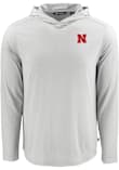 Mens Nebraska Cornhuskers Grey Cutter and Buck Coastline Eco Lightweight Hooded Sweatshirt