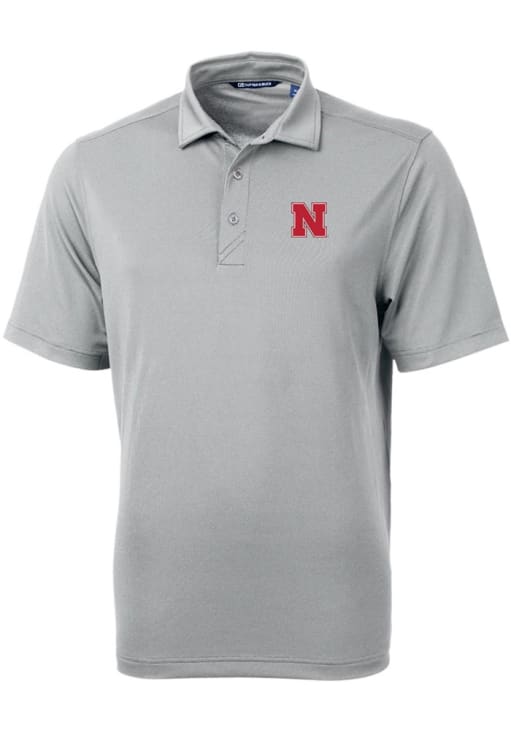 Mens Nebraska Cornhuskers Grey Cutter and Buck Virtue Eco Pique Short Sleeve Polo Shirt