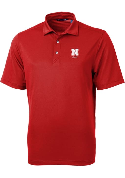Mens Nebraska Cornhuskers Red Cutter and Buck Alumni Virtue Eco Pique Short Sleeve Polo Shirt