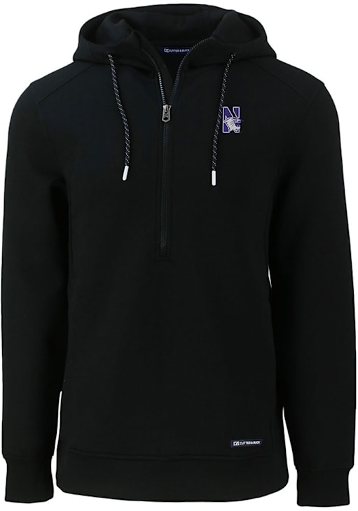 Mens Northwestern Wildcats Black Cutter and Buck Roam Hooded Sweatshirt