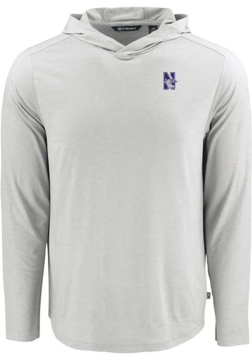 Mens Northwestern Wildcats Grey Cutter and Buck Coastline Eco Hooded Sweatshirt