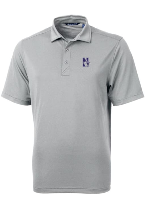 Mens Northwestern Wildcats Grey Cutter and Buck Virtue Eco Pique Short Sleeve Polo Shirt