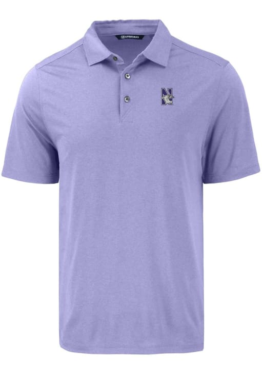 Mens Northwestern Wildcats Pink Cutter and Buck Coastline Eco Short Sleeve Polo Shirt