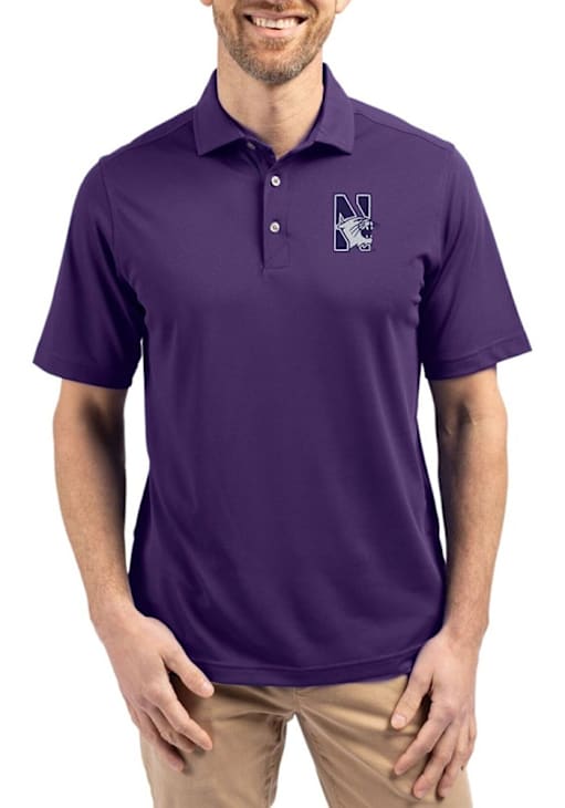 Enhance your professional style with this striking Purple Big and Tall Polo! Showcase your team pride among colleagues with this exceptional Northwestern Wildcats Purple Virtue Eco Pique Big and Tall Golf Shirt. Stand out and make a statement in this Northwestern Wildcats Big and Tall Golf Shirt, featuring a moisture wicking material that adds a touch of distinction to your look.