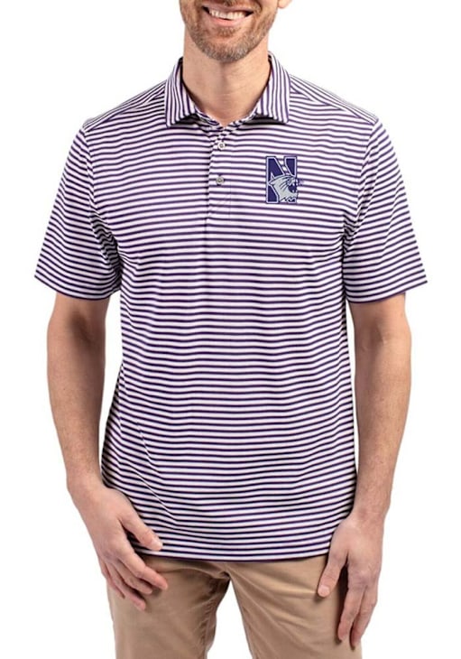 Enhance your professional style with this striking Purple Big and Tall Polo! Showcase your team pride among colleagues with this exceptional Northwestern Wildcats Purple Virtue Eco Pique Stripe Big and Tall Golf Shirt. Stand out and make a statement in this Northwestern Wildcats Big and Tall Golf Shirt, featuring a stripe pattern that adds a touch of distinction to your look.