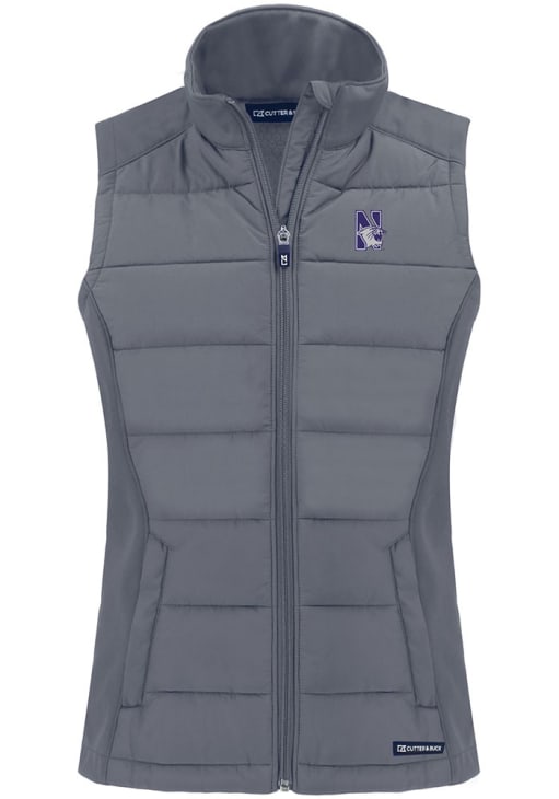 Gear up for the upcoming tailgate with the ultimate Northwestern Wildcats Womens Grey Vest. Stay warm in this Northwestern Wildcats Evoke Sleeveless Jacket, which features a 100% recycled polyester bonded honeycomb softshell.
