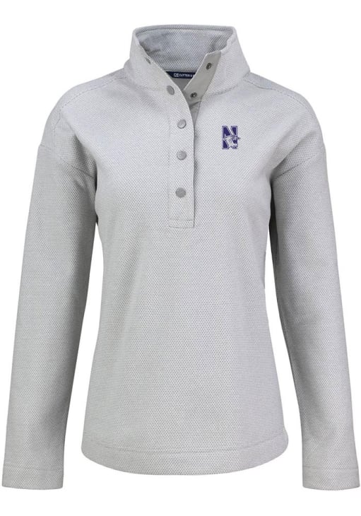 Embrace the warmth and showcase your Wildcats pride with our Northwestern Wildcats Long Sleeve Qtr Zip. This Womens Grey Hunts Point Long Sleeve Pullover offers a team logo on chest for the perfect combination of comfort and style. Elevate your everyday look with this must-have Northwestern Wildcats Long Sleeve Qtr Zip.