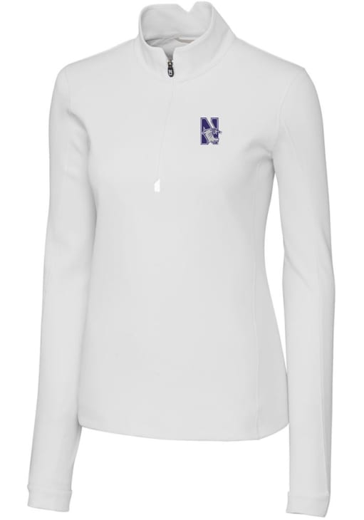 Embrace the warmth and showcase your Wildcats pride with our Northwestern Wildcats Long Sleeve Qtr Zip. This Womens White Traverse Long Sleeve Pullover offers a high quality 2-ply DryTec matte finish polyester for the perfect combination of comfort and style. Elevate your everyday look with this must-have Northwestern Wildcats Long Sleeve Qtr Zip.