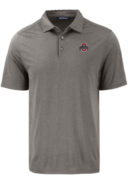 Mens Ohio State Buckeyes Grey Cutter and Buck White Letter Coastline Eco Short Sleeve Polo Shirt