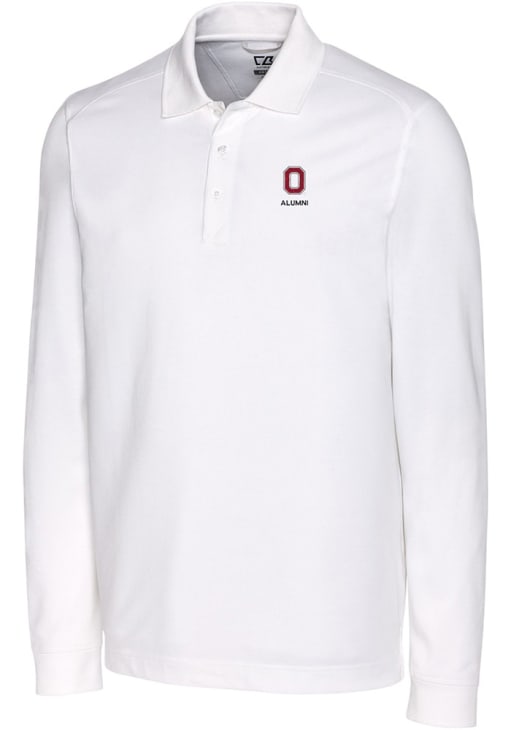 Make a bold statement in this Ohio State Buckeyes Cutter and Buck Mens White Alumni Advantage Long Sleeve Long Sleeve Polo! This Polo features a knit pique with soft wash finish, making this Mens Long Sleeve Polo Shirt perfect for any The Ohio State University fan who wants to display their spirit in any setting.