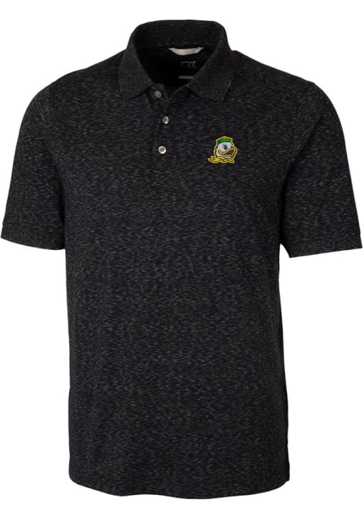 Mens Oregon Ducks Black Cutter and Buck Advantage Space Dye Short Sleeve Polo Shirt