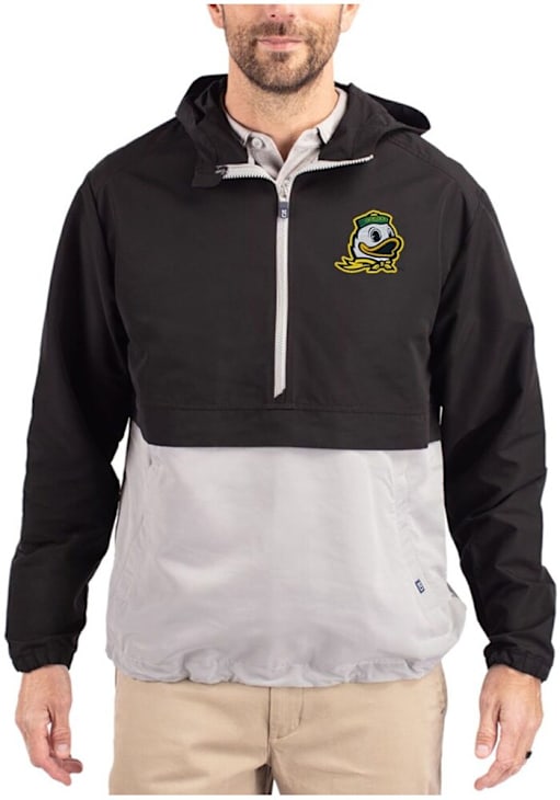 Mens Oregon Ducks Black Cutter and Buck Charter Eco Pullover Jackets
