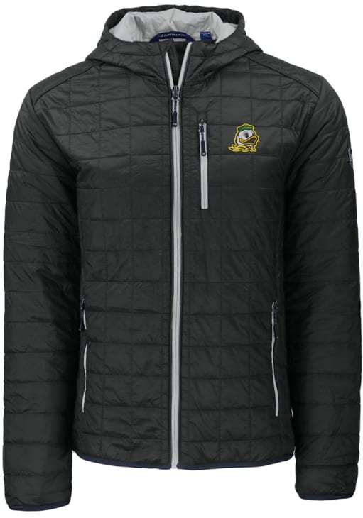 Size Chart for Mens Oregon Ducks Black Cutter and Buck Rainier PrimaLoft Hooded Filled Jacket