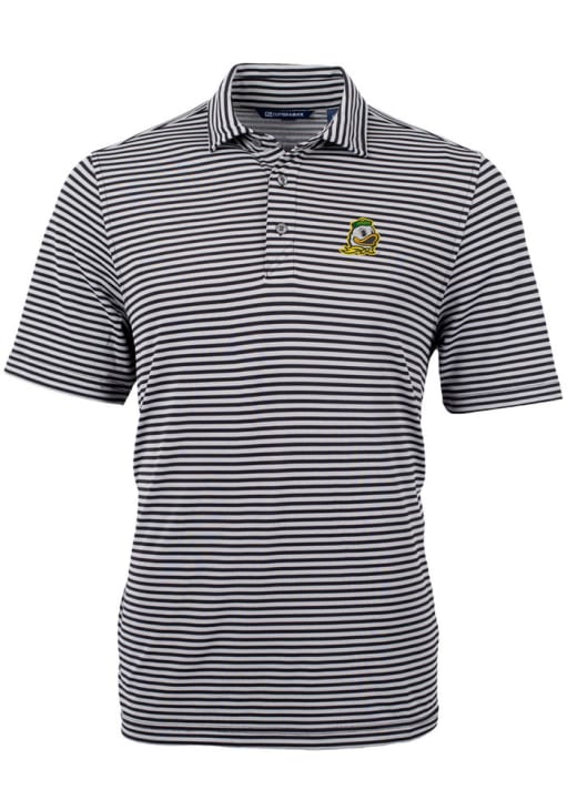 Mens Oregon Ducks Black Cutter and Buck Virtue Eco Pique Stripe Short Sleeve Polo Shirt