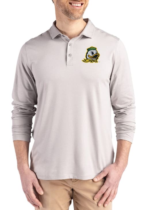 Make a bold statement in this Oregon Ducks Cutter and Buck Mens Grey Coastline Long Sleeve Long Sleeve Polo! This Polo features a team logo on left chest, making this Mens Long Sleeve Polo Shirt perfect for any Oregon fan who wants to display their spirit in any setting.