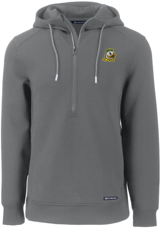 Mens Oregon Ducks Grey Cutter and Buck Roam Hooded Sweatshirt