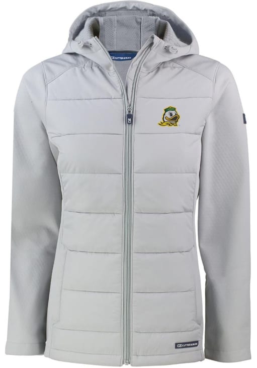 Stay warm and cozy with this Oregon Ducks Womens Charcoal Evoke Hood Heavy Weight Jacket! Cheer on the Ducks in this Oregon Heavy Weight Jacket. With a 100% recycled polyester bonded honeycomb softshell, you won't want to be caught without this Heavy Weight Jacket on gameday.