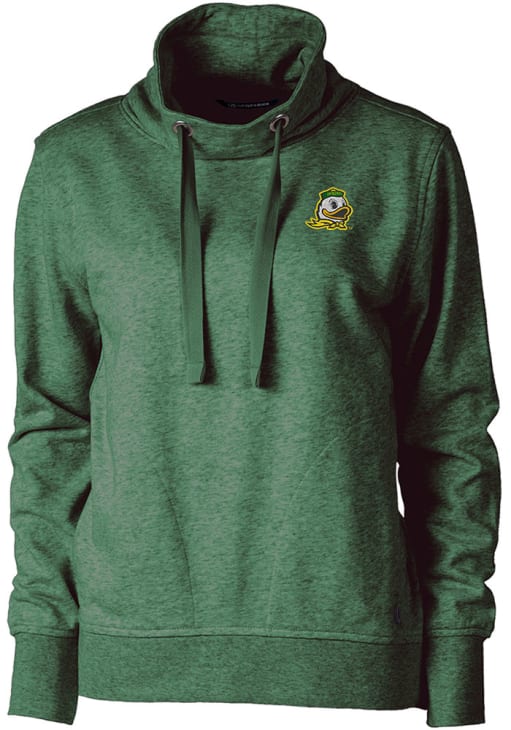 Embrace your Ducks pride and showcase your team spirit with confidence in this Oregon Ducks Long Sleeve Hoodie! Stay warm and stylish with the Oregon Womens Green Saturday Mock Hooded Sweatshirt. Designed with high quality blend of super soft cotton with 10% polyester, this Ducks Long Sleeve Hoodie is a must-have for dedicated fans.