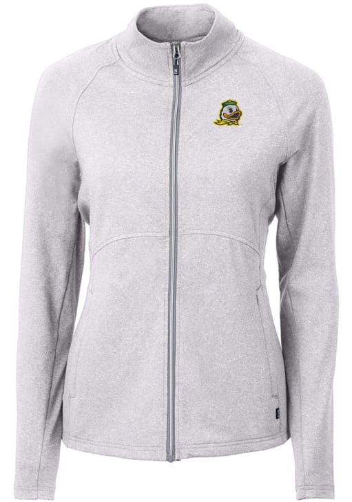 Stay warm and cozy with this Oregon Ducks Womens Grey Adapt Eco Knit Light Weight Jacket! Cheer on the Ducks in this Oregon Light Weight Jacket. With a wind-resistance, stretch, and lightweight warmth, you won't want to be caught without this Light Weight Jacket on gameday.