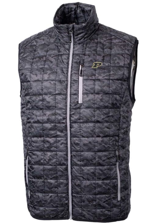 Size Chart for Mens Purdue Boilermakers Black Cutter and Buck Rainier PrimaLoft Printed Vest