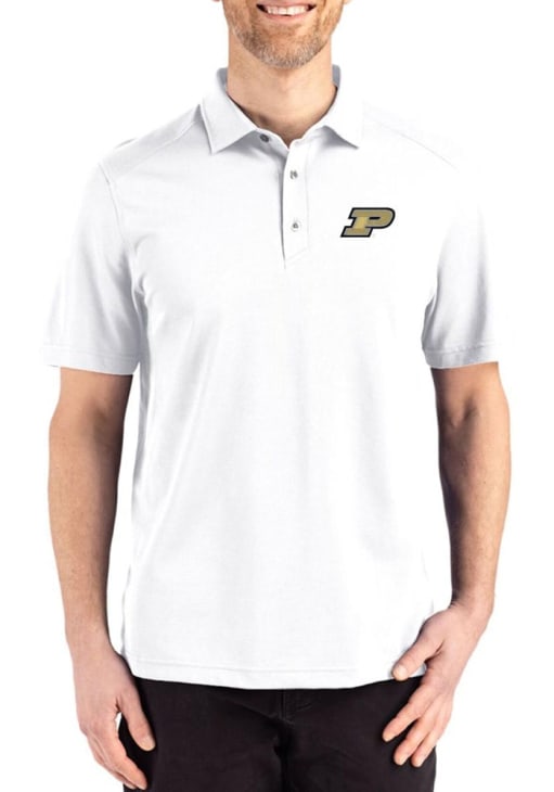 Mens Purdue Boilermakers White Cutter and Buck Advantage Refresh Short Sleeve Polo Shirt