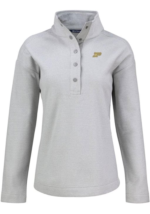 Embrace the warmth and showcase your Boilermakers pride with our Purdue Boilermakers Long Sleeve Qtr Zip. This Womens Grey Hunts Point Long Sleeve Pullover offers a team logo on chest for the perfect combination of comfort and style. Elevate your everyday look with this must-have Purdue Boilermakers Long Sleeve Qtr Zip.