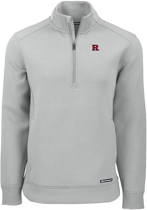 Mens Rutgers Scarlet Knights Ash Cutter and Buck Roam Qtr Zip Pullover