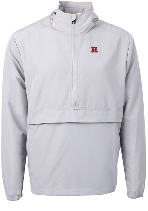 Mens Rutgers Scarlet Knights Grey Cutter and Buck Charter Eco Pullover Jackets