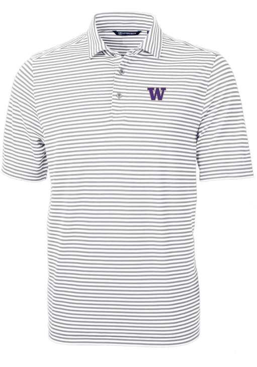 Enhance your professional style with this striking Grey Big and Tall Polo! Showcase your team pride among colleagues with this exceptional Washington Grey Virtue Eco Pique Stripe Big and Tall Golf Shirt. Stand out and make a statement in this Washington Huskies Big and Tall Golf Shirt, featuring a stripe pattern that adds a touch of distinction to your look.