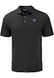 Mens Washington Huskies Black Cutter and Buck Coastline Eco Short Sleeve Polo Shirt