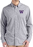 Mens Washington Huskies Black Cutter and Buck Gingham LS Woven Long Sleeve Dress Shirt