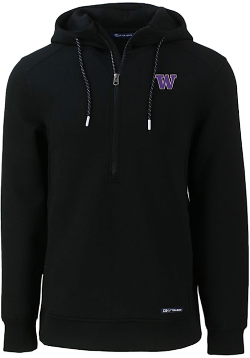 Mens Washington Huskies Black Cutter and Buck Roam Hooded Sweatshirt