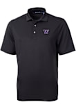 Mens Washington Huskies Black Cutter and Buck Virtue Eco Pique Short Sleeve Polo Shirt