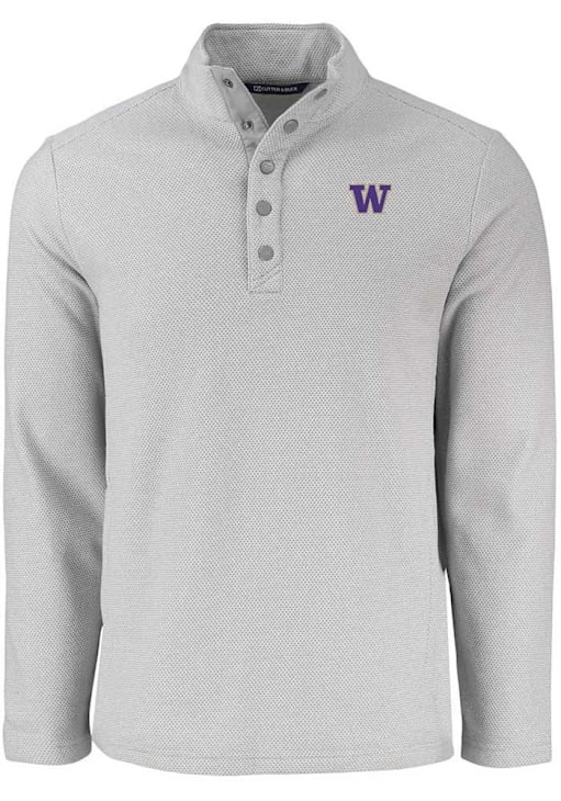 Embrace the warmth and showcase your Huskies pride with our Washington Huskies Long Sleeve Qtr Zip Pullover. This Mens Grey Hunts Point Long Sleeve Pullover offers a team logo on chest for the perfect combination of comfort and style. Elevate your everyday look with this must-have Washington Huskies Long Sleeve Qtr Zip Pullover.